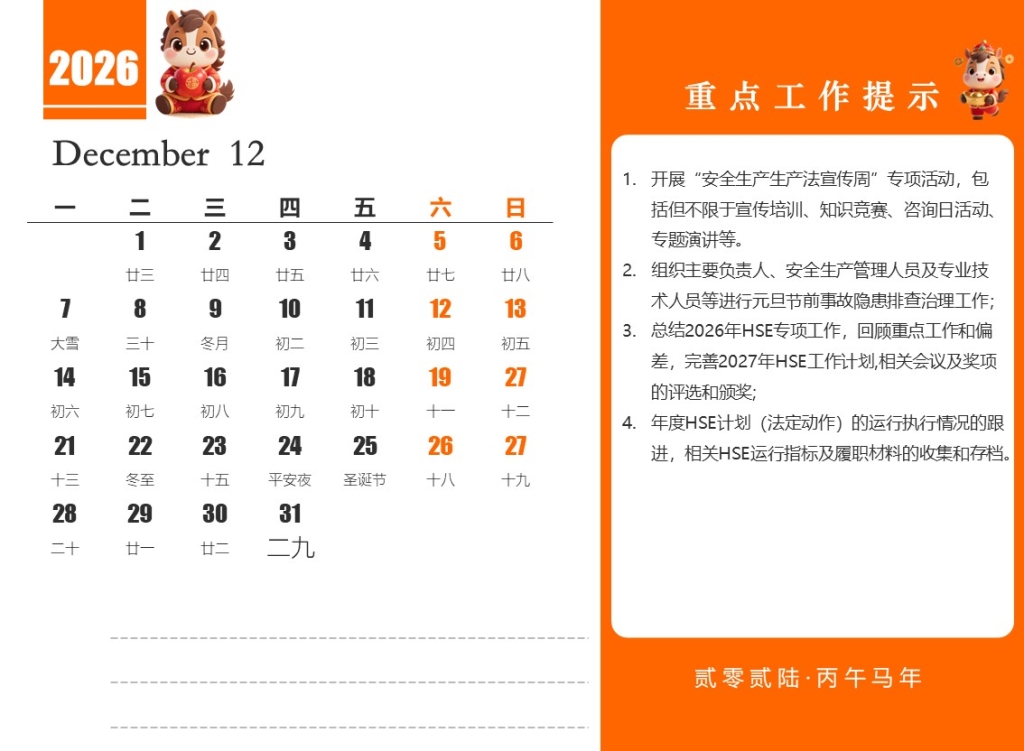 ESH安全管理 » 2026安全人的日历